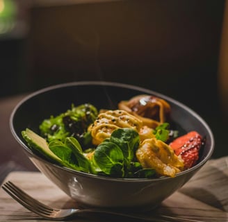 Des salades croquantes, préparées avec des légumes de saison et vinaigrettes maison.